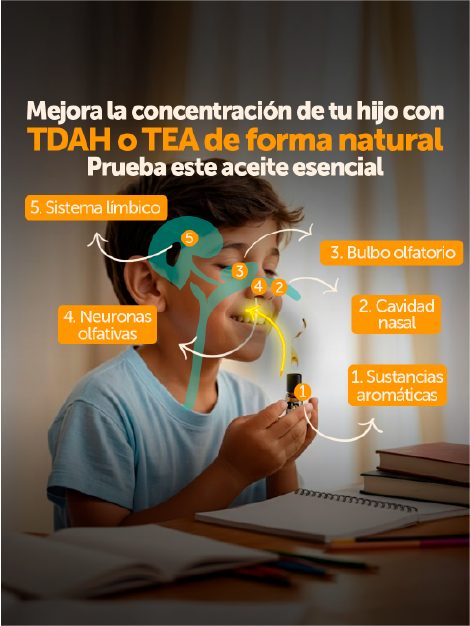 Cuando tu hijo inhala el aroma, las moléculas viajan directo al bulbo olfativo y llegan al sistema límbico, la parte del cerebro que regula emociones, memoria y concentración.